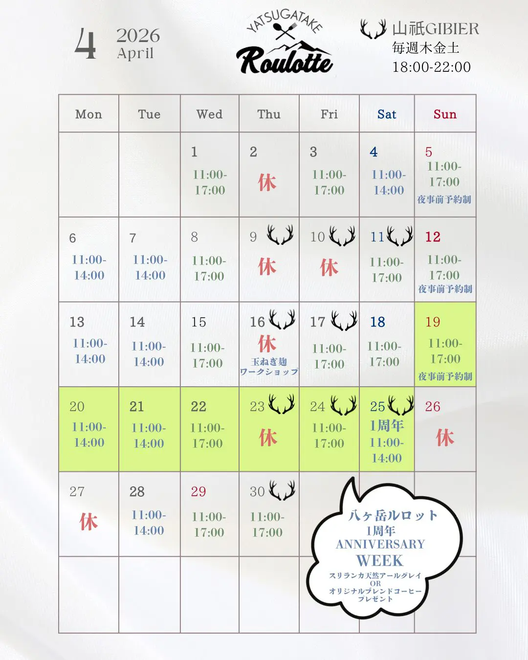 八ヶ岳&南アルプスの恵み、ジビエ・新鮮野菜をふんだんに取り入れた健康的なお料理 人工甘味料や添加物、酵母エキスなど不使用で安心・安全のお料理 ホットドッグやカレー、ステーキなど誰もが大好きなメニューを、ジビエやグルテンフリー、ヴィーガンなどのヘルシー食材で調理。化学調味料を使わずに、麹で調味料から手作りし、ハーブ&スパイスも日本人に合うように程よく調味しました。 ヴィーガン、グルテンフリー対応 一つのテーブルを囲み様々な食の嗜好を持つ人々が集まり楽しめる場 様々な食の嗜好を持つ全ての方が一同に食を楽しめる場 それが八ヶ岳ルロット。ヴィーガン、グルテンフリー対応だけどボリューム満点で美味しく、味もしっかり楽しめるお料理を提供します。 REUSE お店はREUSEをテーマに、産廃された板、敷地内に廃棄された鉄屑、木材…それらをお店の至る所に活かしREMAKEしました。海外の田舎のカフェのような落ち着いた空間を是非お楽しみください。 BLOG 4月営業日のご案内 4月の営業日になります。定休日以外にもお休みをいただいておりますので予めご了承く… メディアでも話題の 旅するオムライス わにのいま 善さんとヤマツミジビエ・八ヶ岳ルロットによる【いのちの円環】 旅と土地に導かれ、八ヶ岳のトマト農園でのご縁とジビエ会をきっかけに繋がった三人。… 3月営業日のご案内 お待たせしております。3月の営業日になります。予めご了承くださいませ。よろしくお… Instagram LINEお友達追加 CAFE&DINER 八ヶ岳ルロット アクセス 車 :小淵沢インターより道の駅方面へ約30秒住所 山梨県北杜市小淵沢町2969−1電話 080-2399-6030 営業時間月・火 11:00〜14:00水・金・土 11:00〜17:00日 11:00〜21:00(15:00〜17:00一時閉店)定休日木曜日予約予約可席数17席設備テイクアウトOK、テラスあり、駐車場10台以上